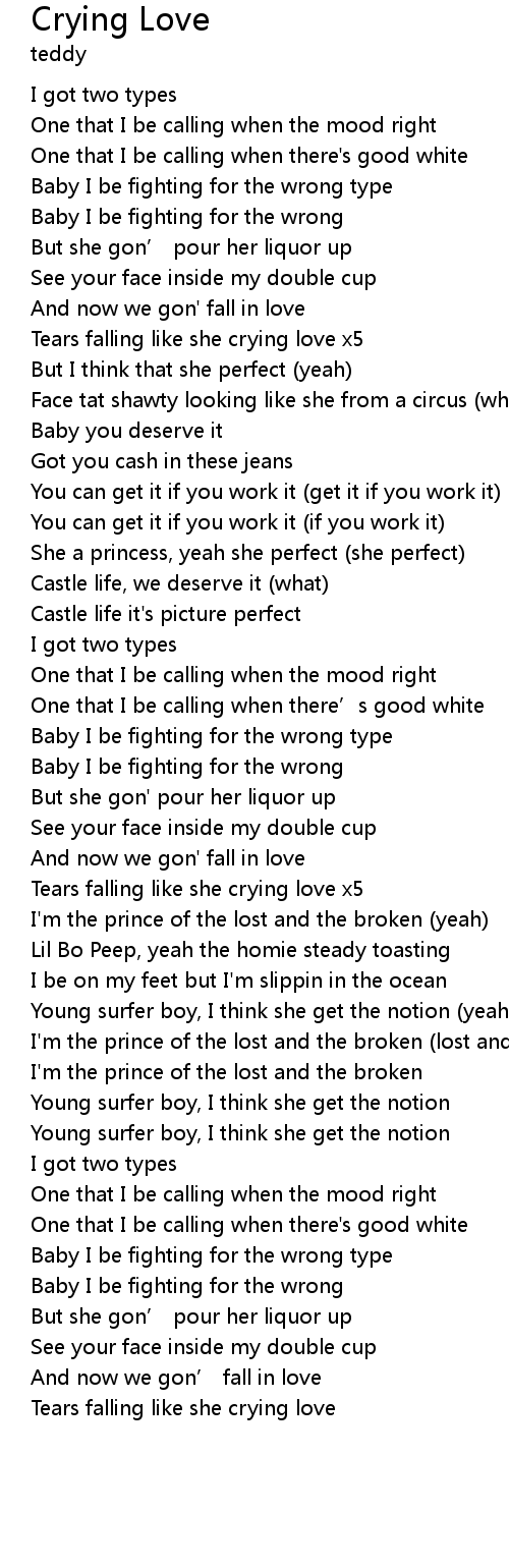 | [00:38.64] | Tears falling like she crying love x5 |
