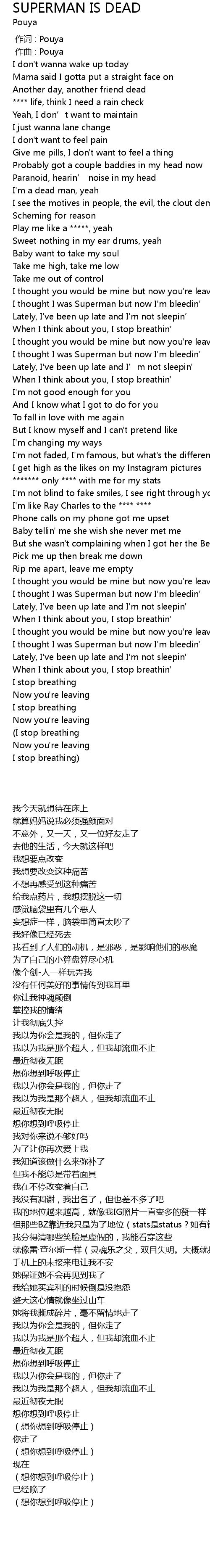 | [00:36.93] | I thought I was Superman but now I'm bleedin' |