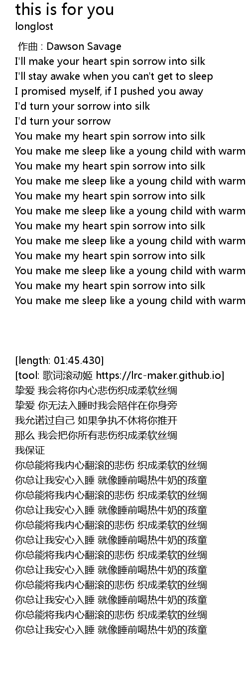 | [00:35.999] | You make my heart spin sorrow into silk |
