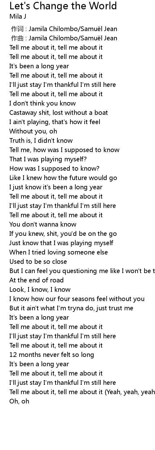 | [02:20.19] | Tell me about it, tell me about it Yeah, yeah, yeah |