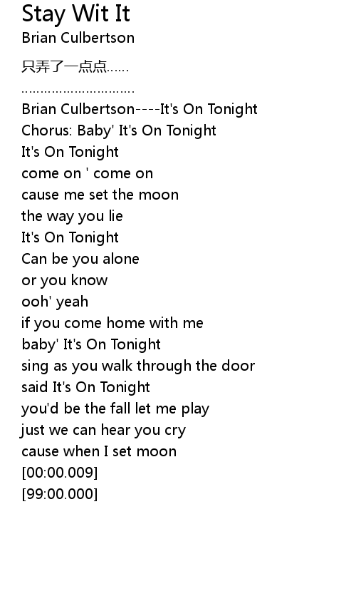 | [00:01.99] | Brian CulbertsonIt' s On Tonight |