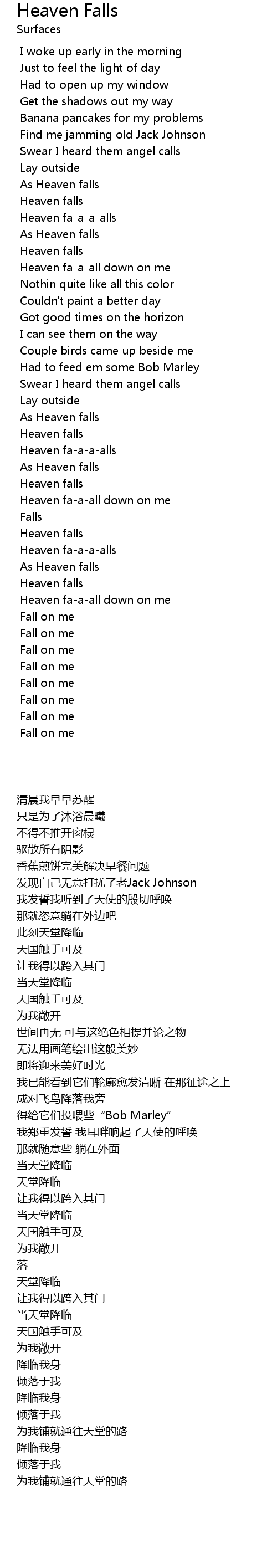 Heaven fa-a-all down on me |