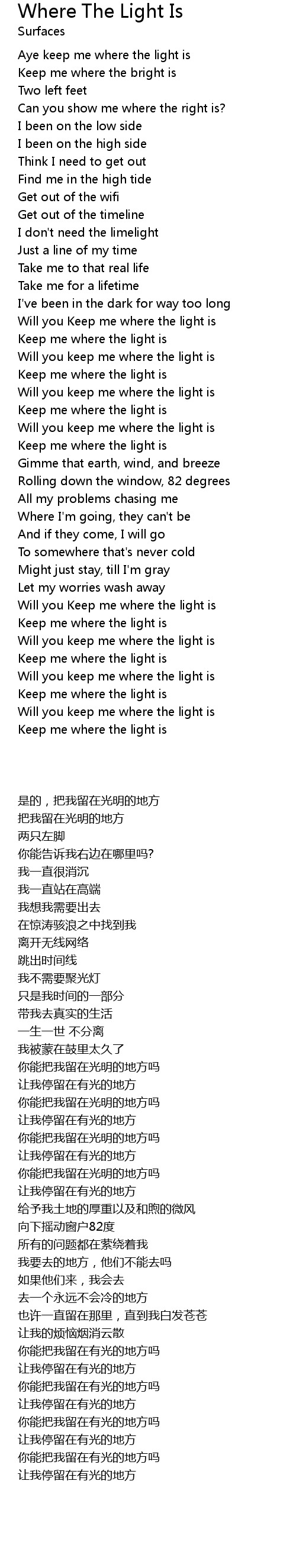Will you keep me where the light is |