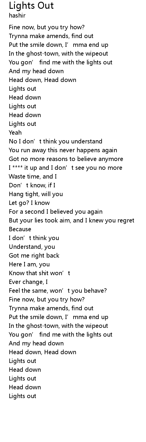 | [00:44.01] | I **** it up and I don’t see you no more |