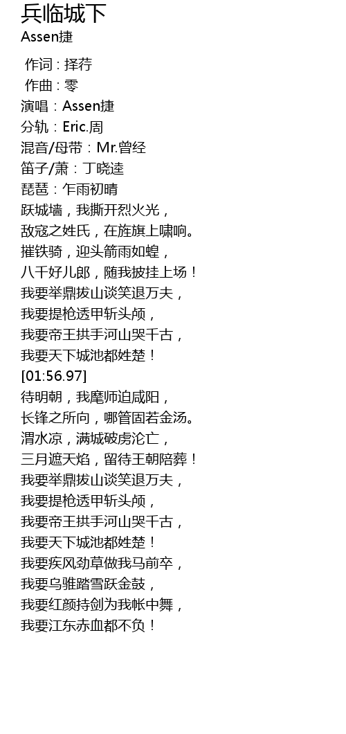| [03:41.66] | 我要江东赤血都不负! |