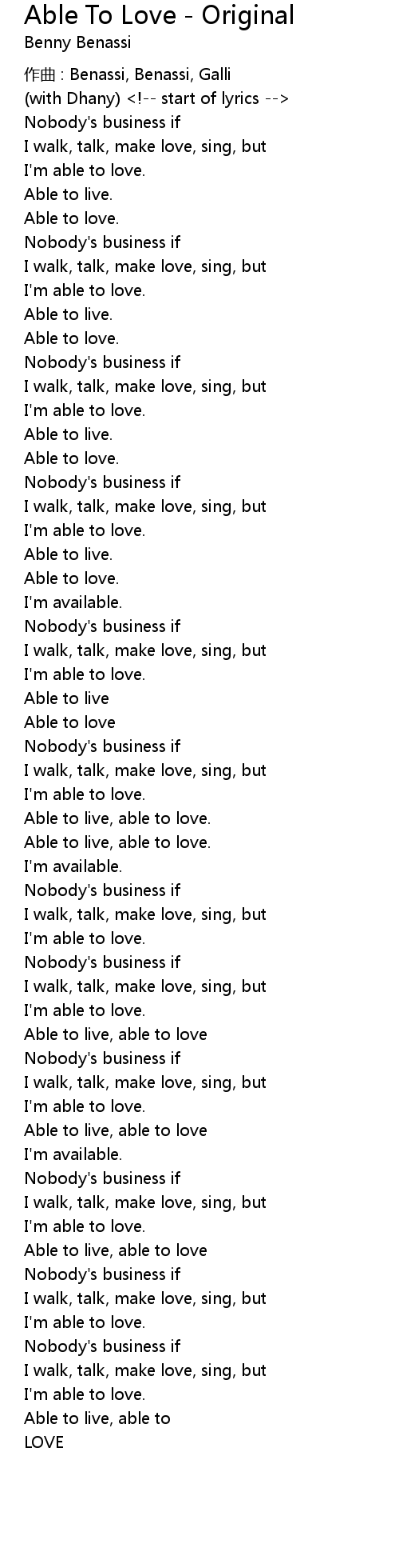 | Song | Able To Love - Original |