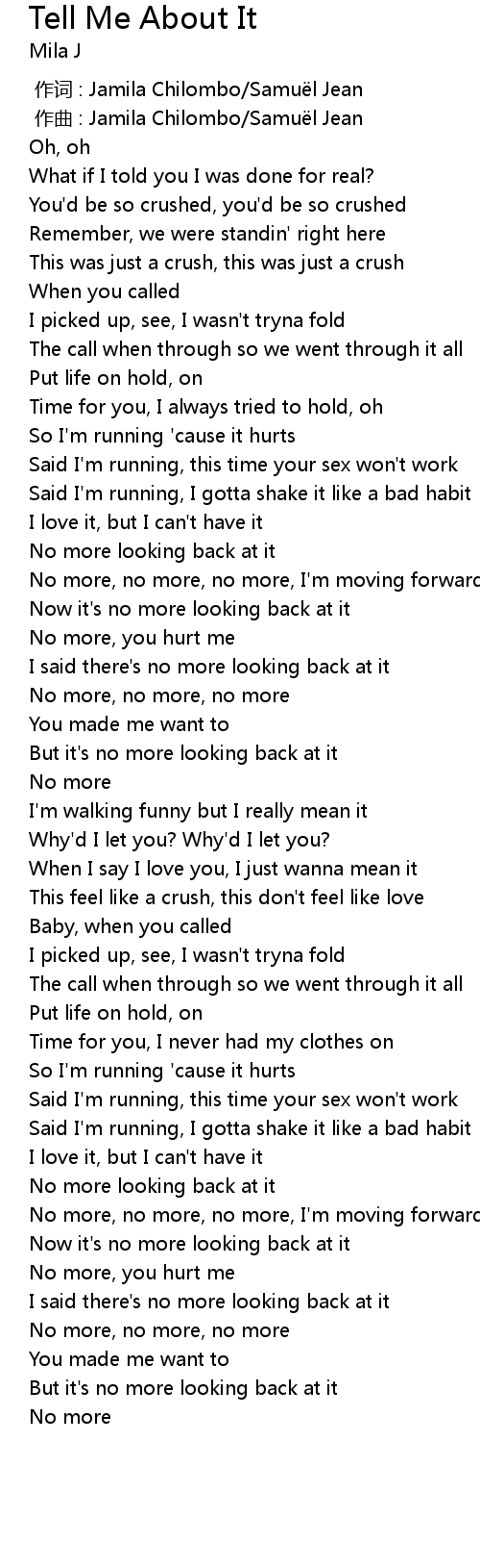 | [01:33.29] | Why' d I let you? Why' d I let you? |