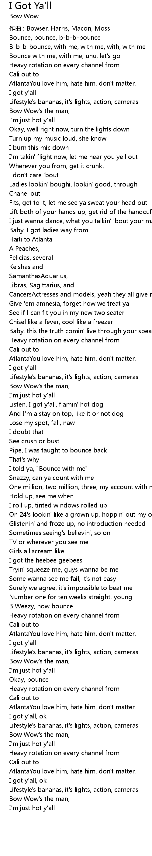| I told ya, " Bounce with me" | |