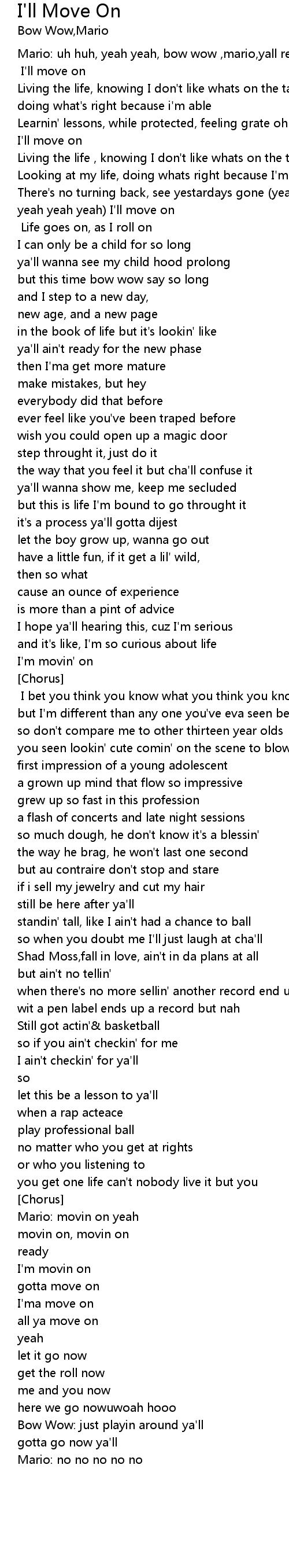 | Mario: movin on yeah | |