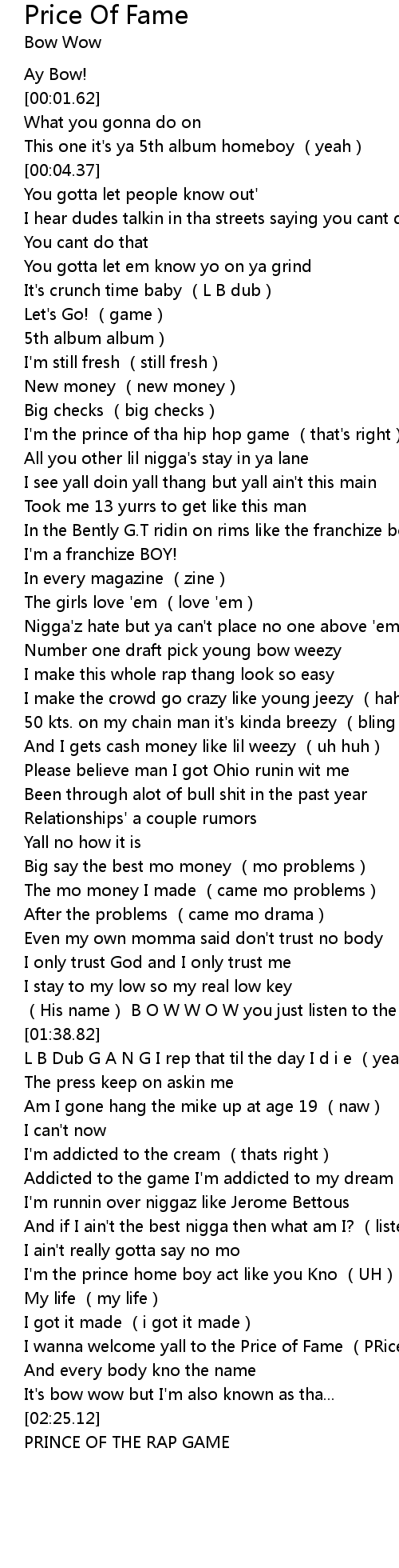 | [02:15.76] | I wanna welcome yall to the Price of Fame (PRice of Fame) |