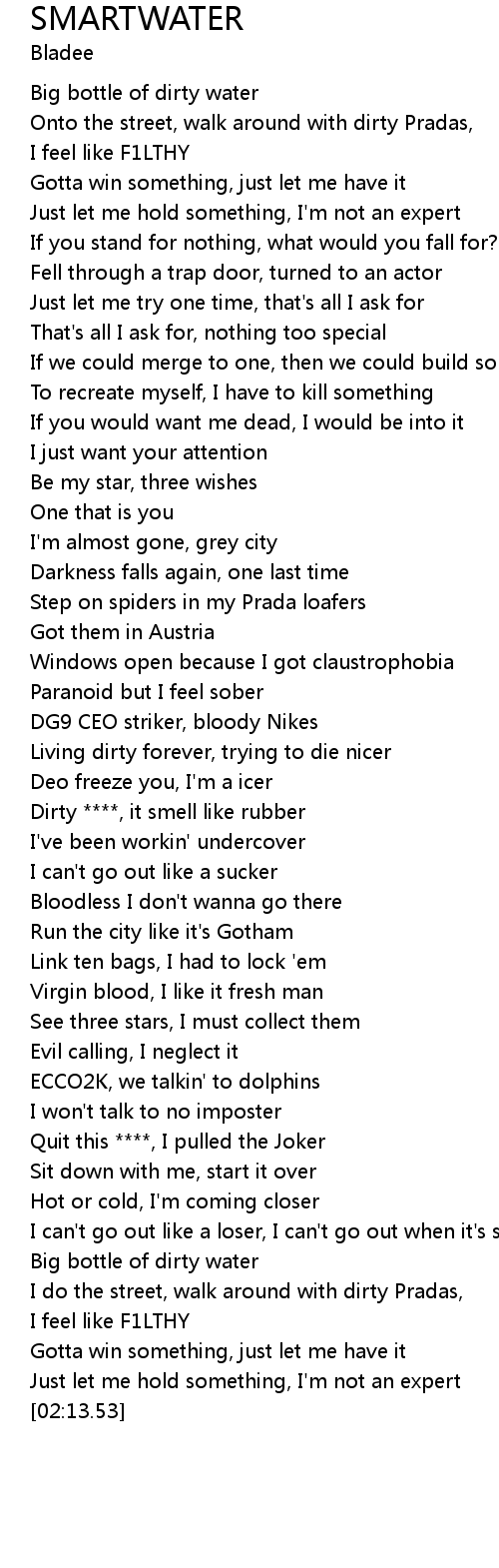 | [02:00.18] | Big bottle of dirty water |