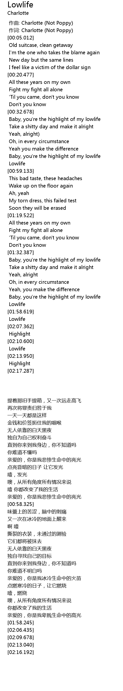 | [00:01.919] | zuò qǔ: Charlotte Not Poppy |