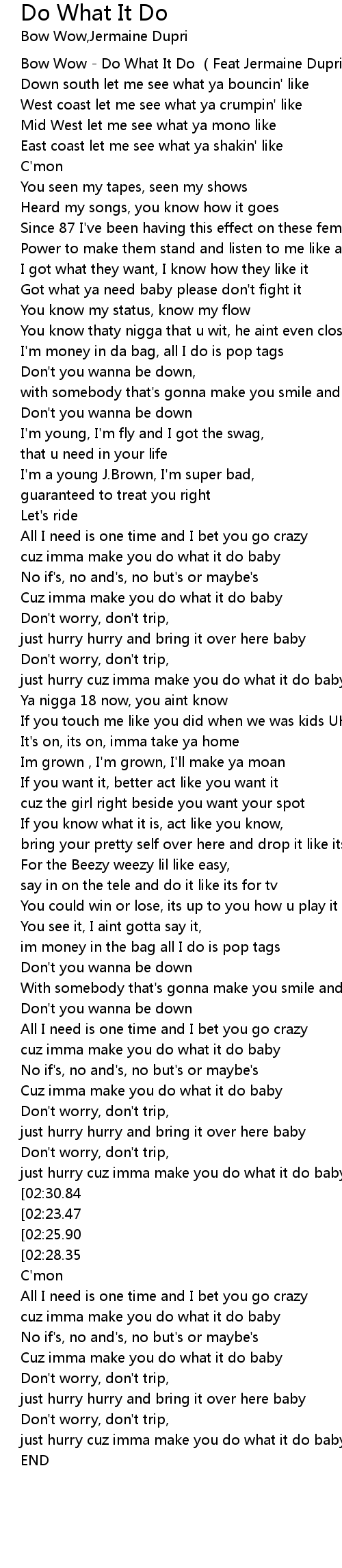 | [00:00.00] | Bow Wow - Do What It Do (Feat Jermaine Dupri) |