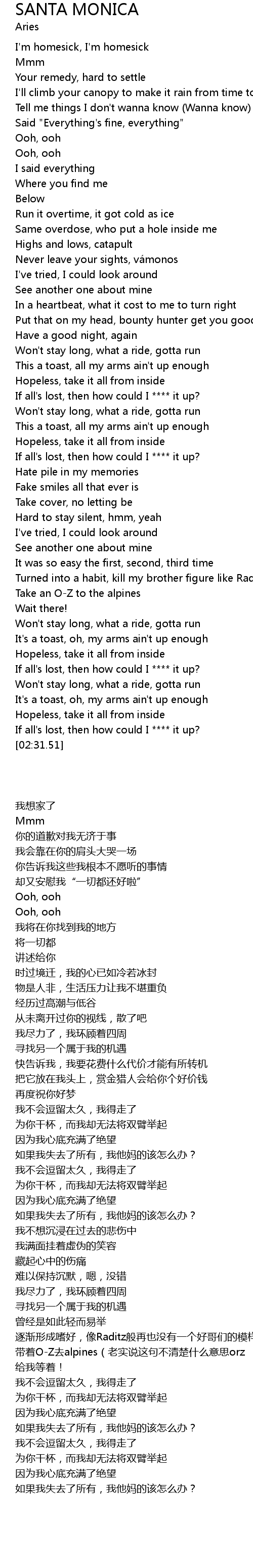 | [00:22.39] | Said " Everything' s fine, everything" |