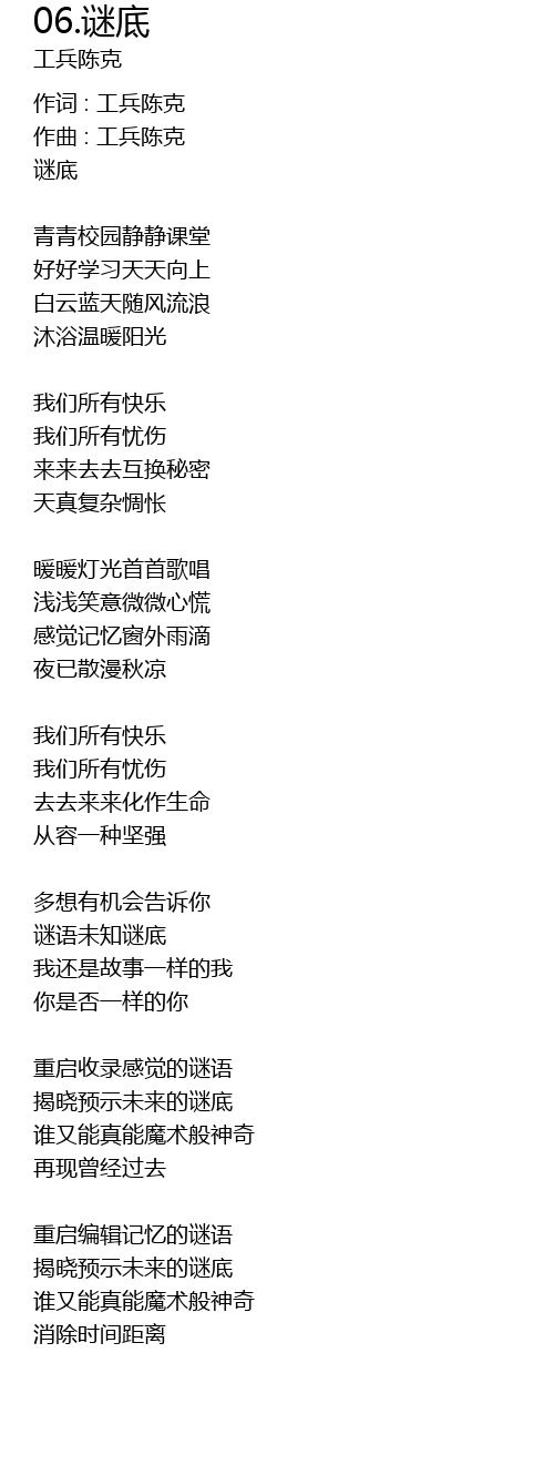 | 作词 : 工兵陈克 | |