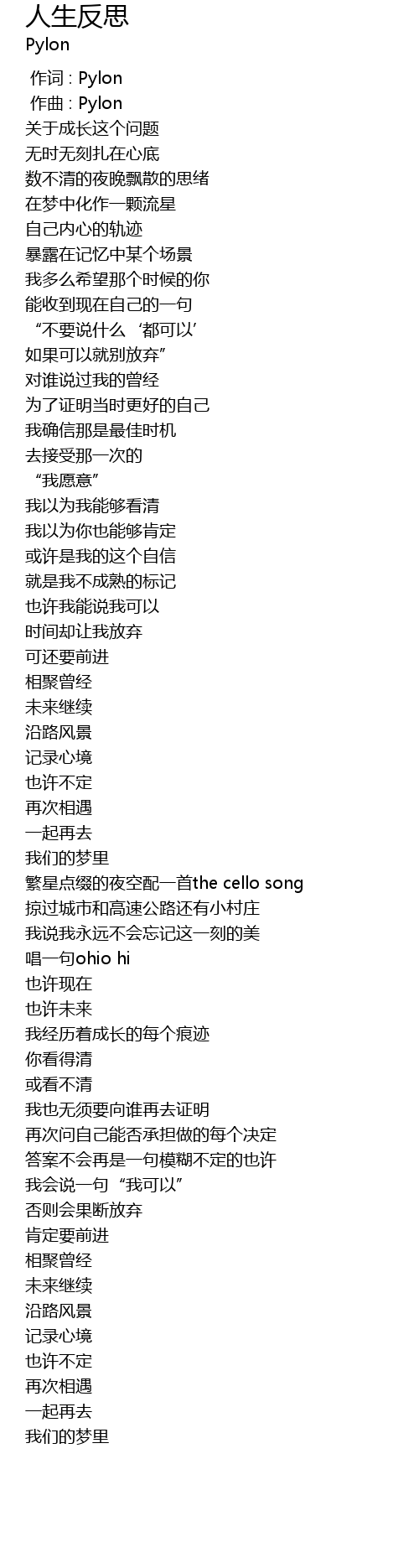| [00:00.000] | 作词 : Pylon |