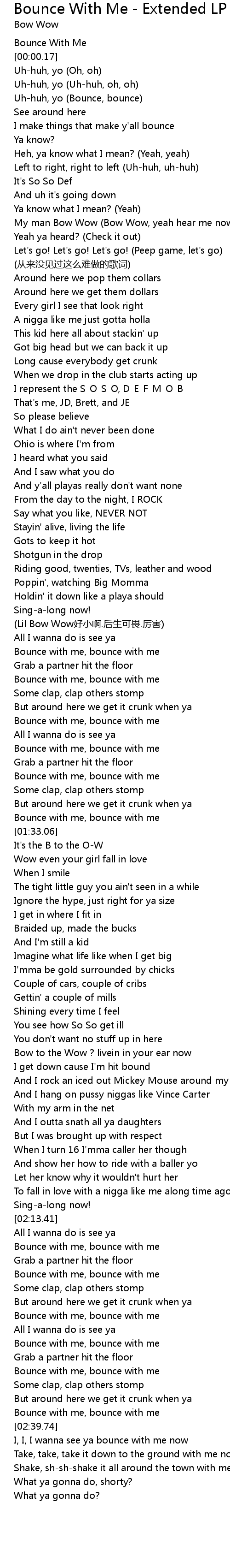 | [00:20.21] | My man Bow Wow (Bow Wow, yeah hear me now) |