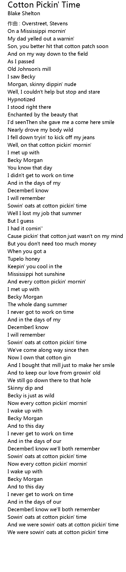 | Cause pickin' that cotton just wasn' t on my mind | |