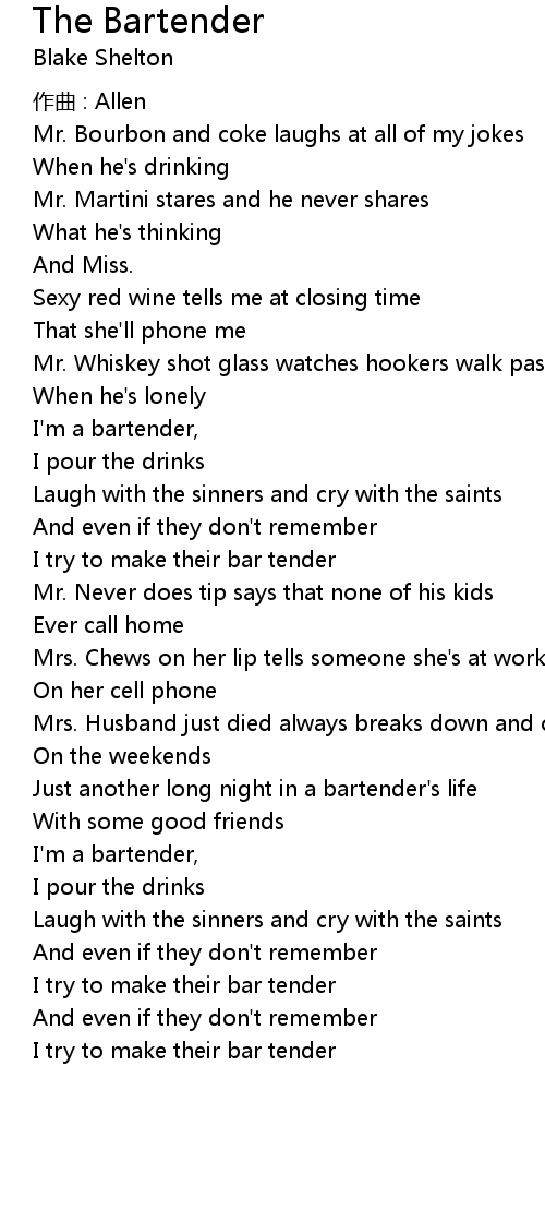 | I' m a bartender, | |