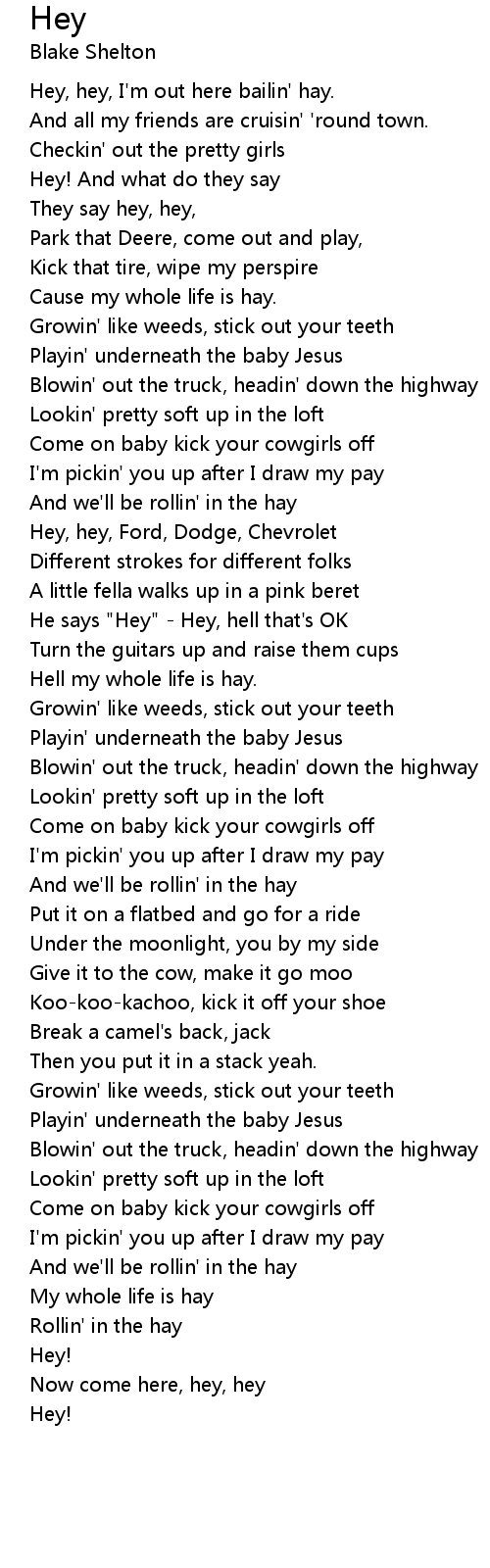 [01:19.19] He says "Hey" - Hey, hell that's OK