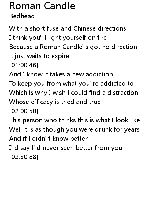 | [00:40.56] | Because a Roman Candle' s got no direction |