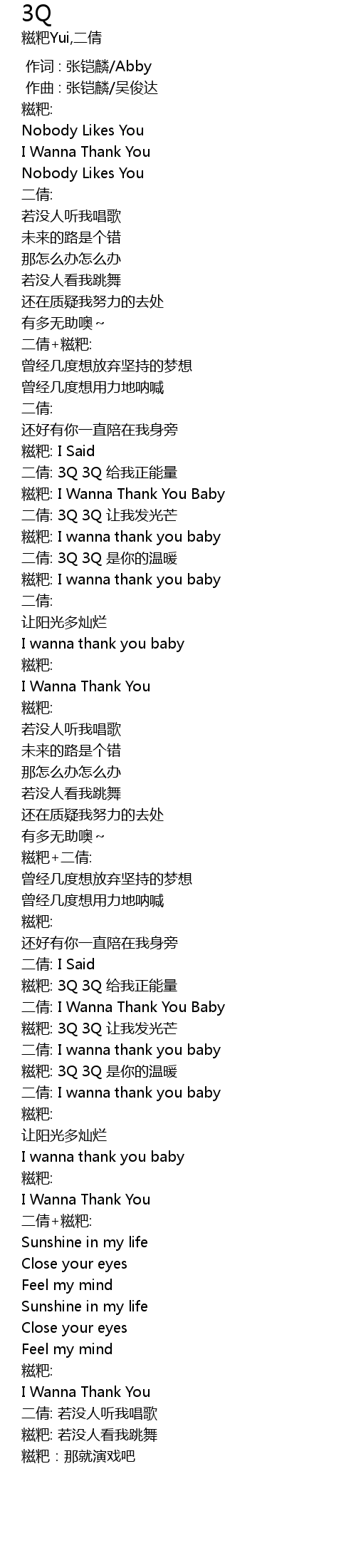| [01:16.714] | èr qiàn: 3Q 3Q shì nǐ de wēn nuǎn |