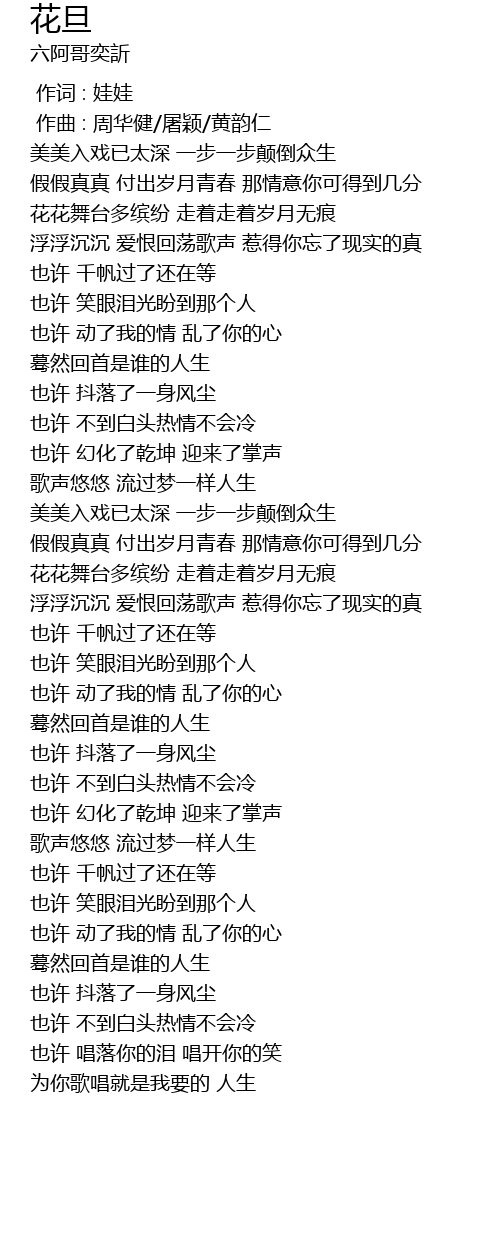 | [00:54.911] | 花花舞台多缤纷 走着走着岁月无痕 |