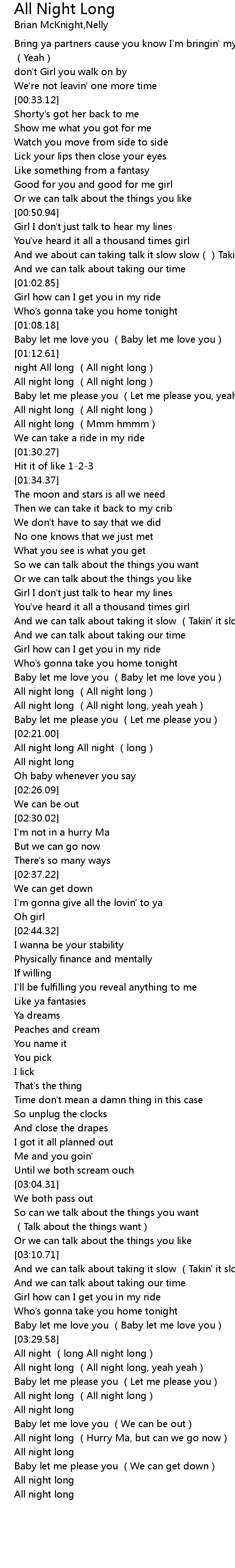 | [03:30.27] | All night (long All night long) |