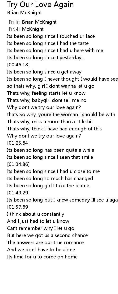 | [00:00.00] | zuò qǔ : Brian McKnight |