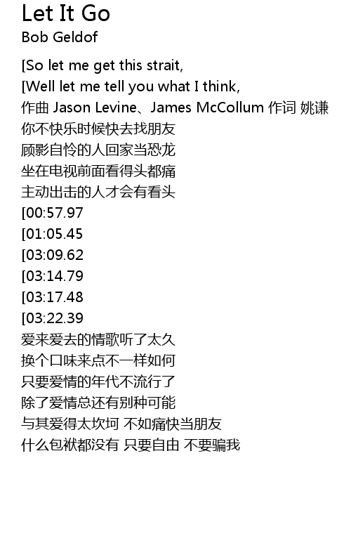 | [03:38.07][03:22.39][02:31.13][01:22.38] | You gotta let it go |