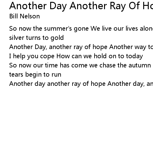 | Another Day, another ray of hope Another way to say hello What can I say How can I help you cope How can we hold on to today | |