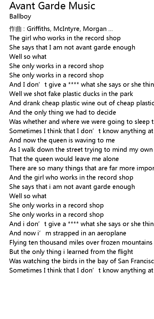 | She says that i am not avant garde enough | |