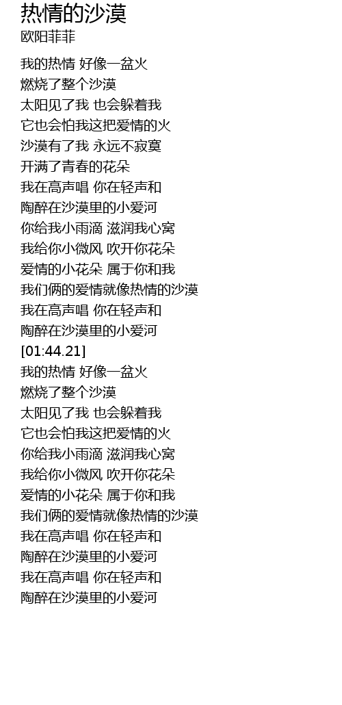 | [01:22.32] | 我们俩的爱情就像热情的沙漠 |
