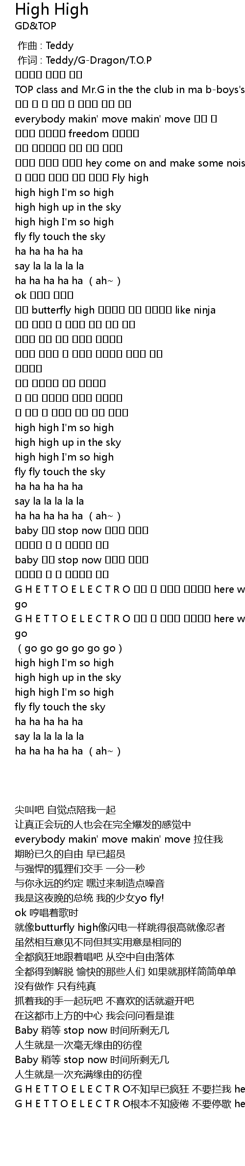 | [00:01.00] | 作词 : Teddy/G-Dragon/T.O.P |