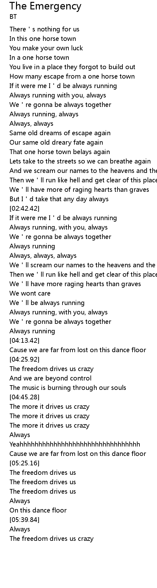 | [05:42.60] | The freedom drives us crazy |