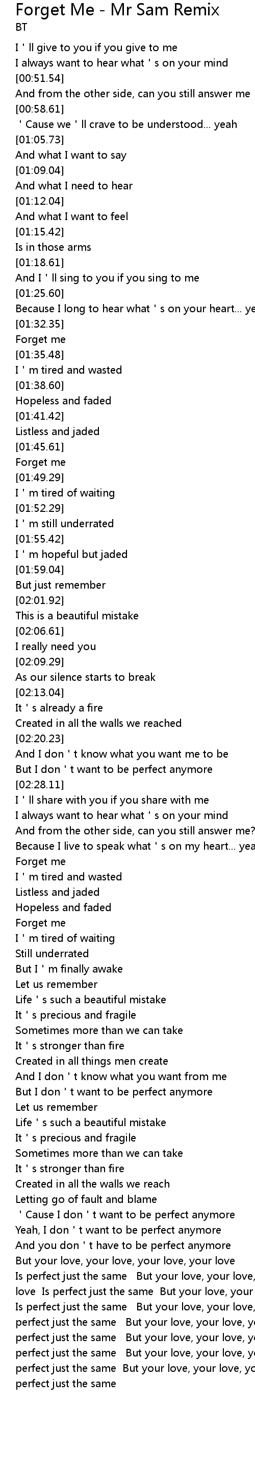 | [01:47.61] | Forget me |