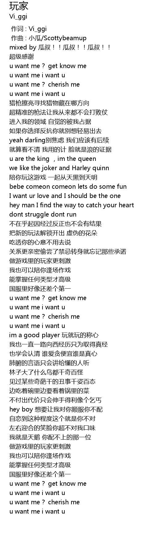 | [01:52.405] | im a good player wán jiù wán de chèn xīn |