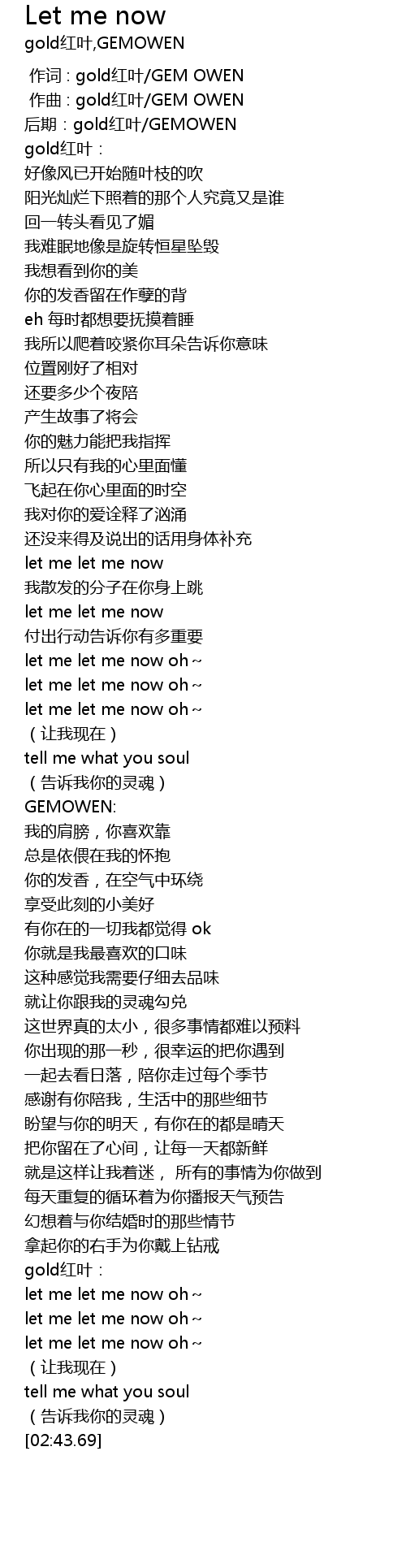 | [00:00.000] | 作词 : gold红叶/GEM OWEN |