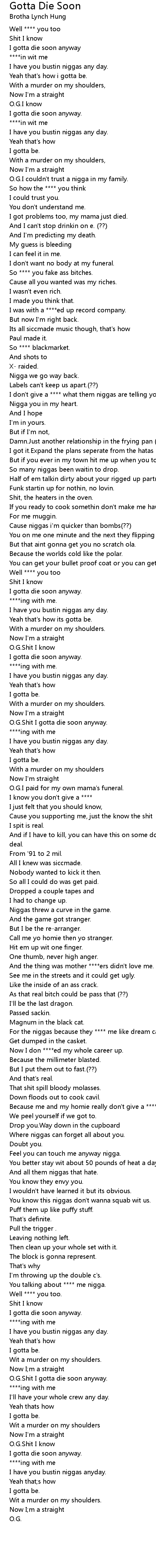 I gotta die soon anyway |