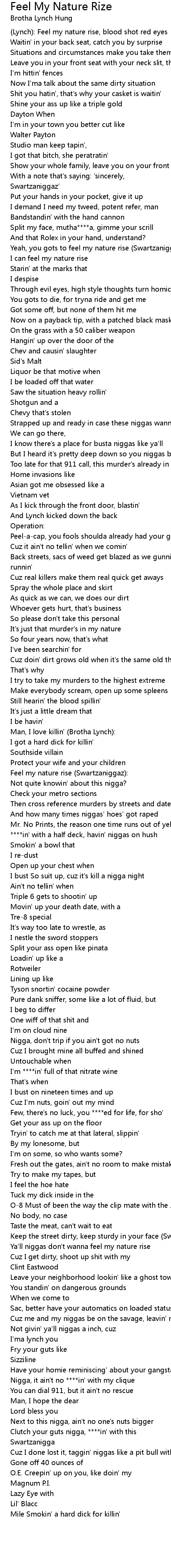 Yeah, you gots to feel my nature rise (Swartzaniggaz): |