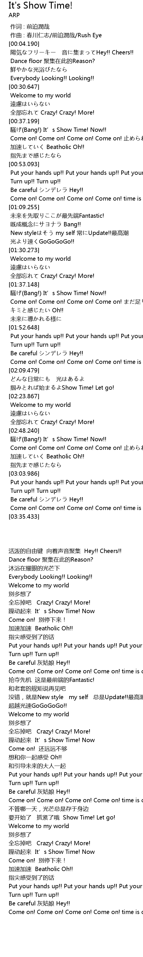 | [01:37.300] | 騒げ(Bang!) It’s Show Time! Now!! |
