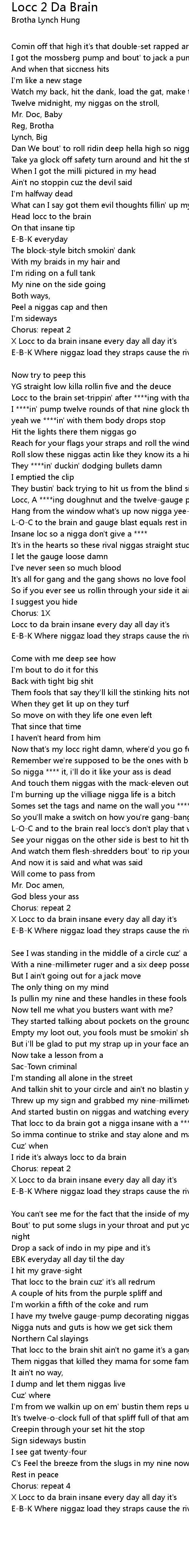 That locc to da brain got a nigga insane with a ****ing empty gun |