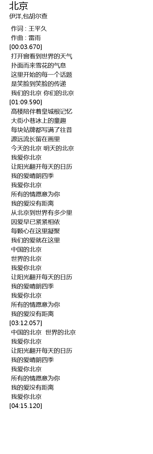 | [03:29.750] | 我爱你北京 |