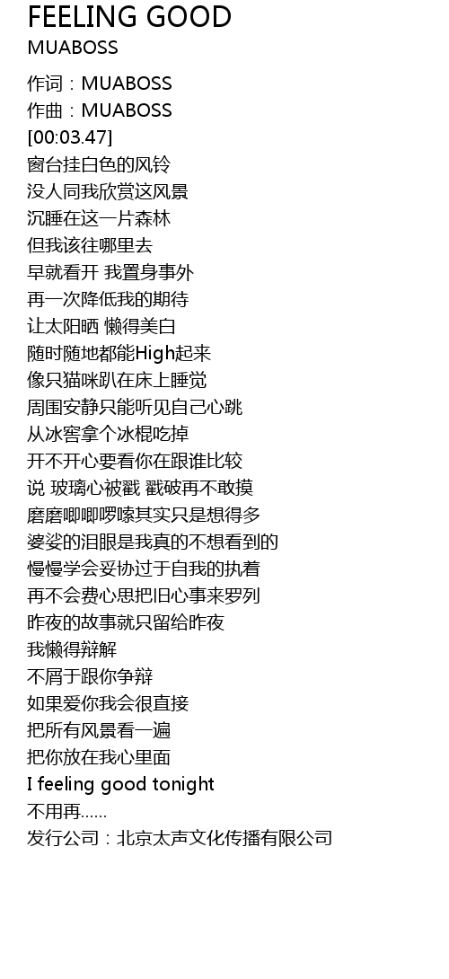 | [01:41.52] | 发行公司:北京太声文化传播有限公司 |