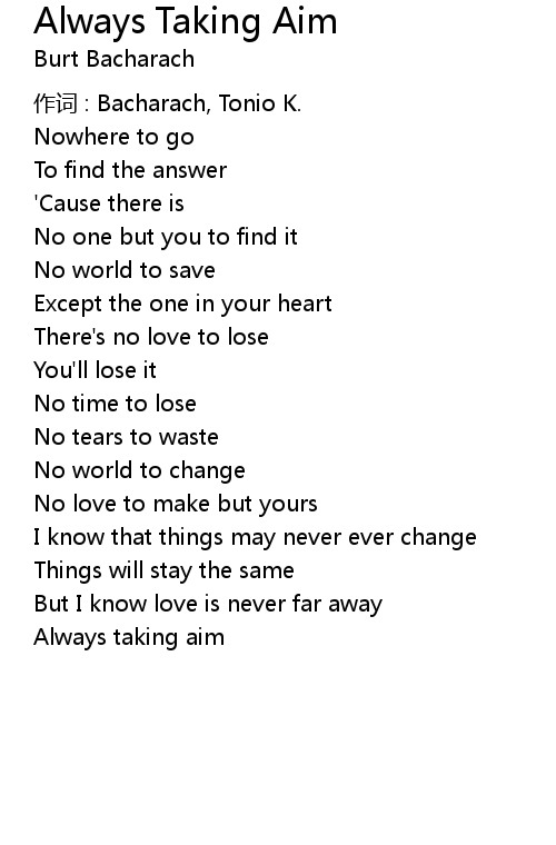 | Song | Always Taking Aim |
