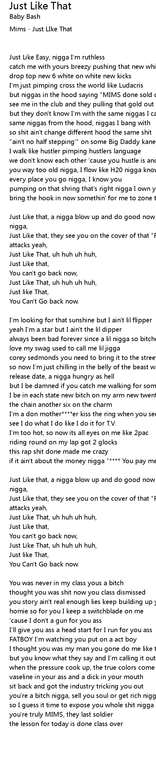 | Just Like that, a nigga blow up and do good now the hood don't want you back nigga, | |