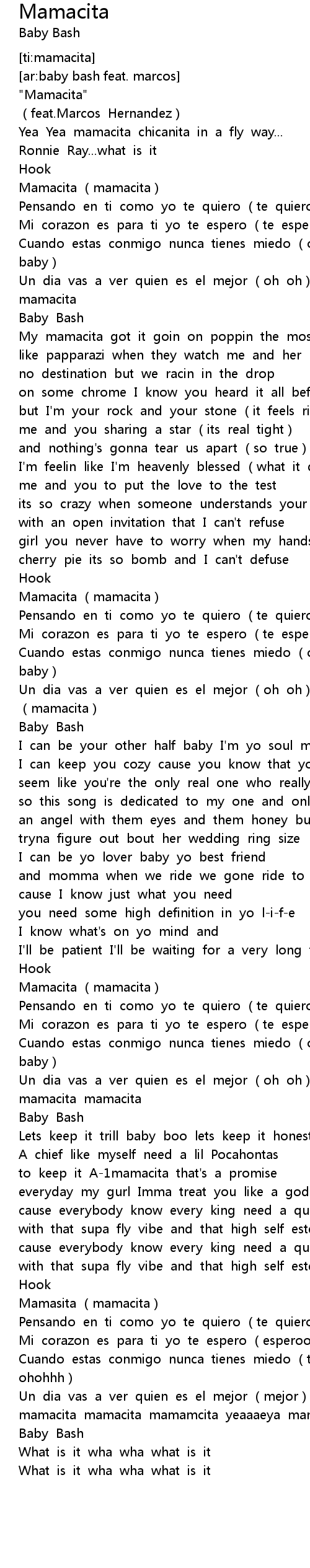 | [03:30.391] | mamacita mamacita mamamcita yeaaaeya mamacita maaaaa |