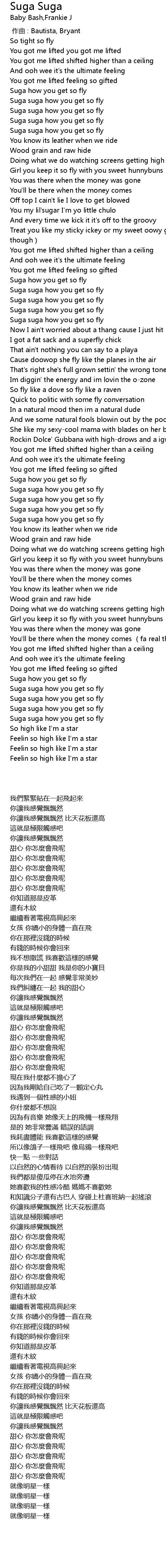 | [01:16.88] | Suga suga how you get so fly |