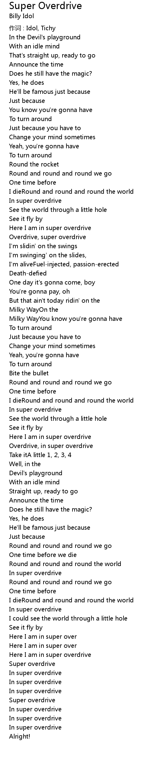 | Overdrive, in super overdrive | |