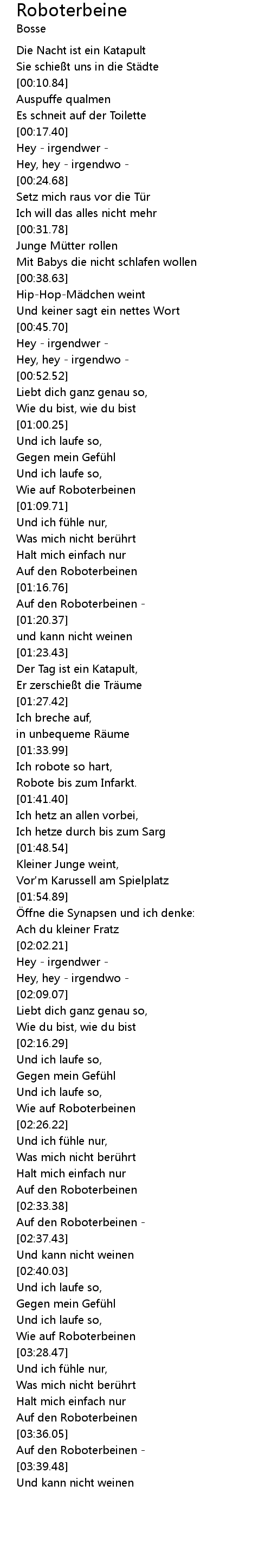 | [02:24.75] | Wie auf Roboterbeinen |